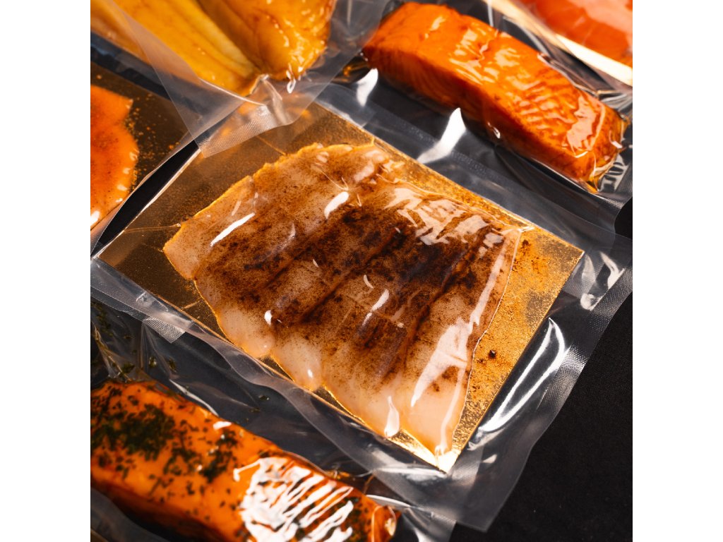 - Halibut gronský uzený studeným kouřem min. 100g - s Medvědím česnekem