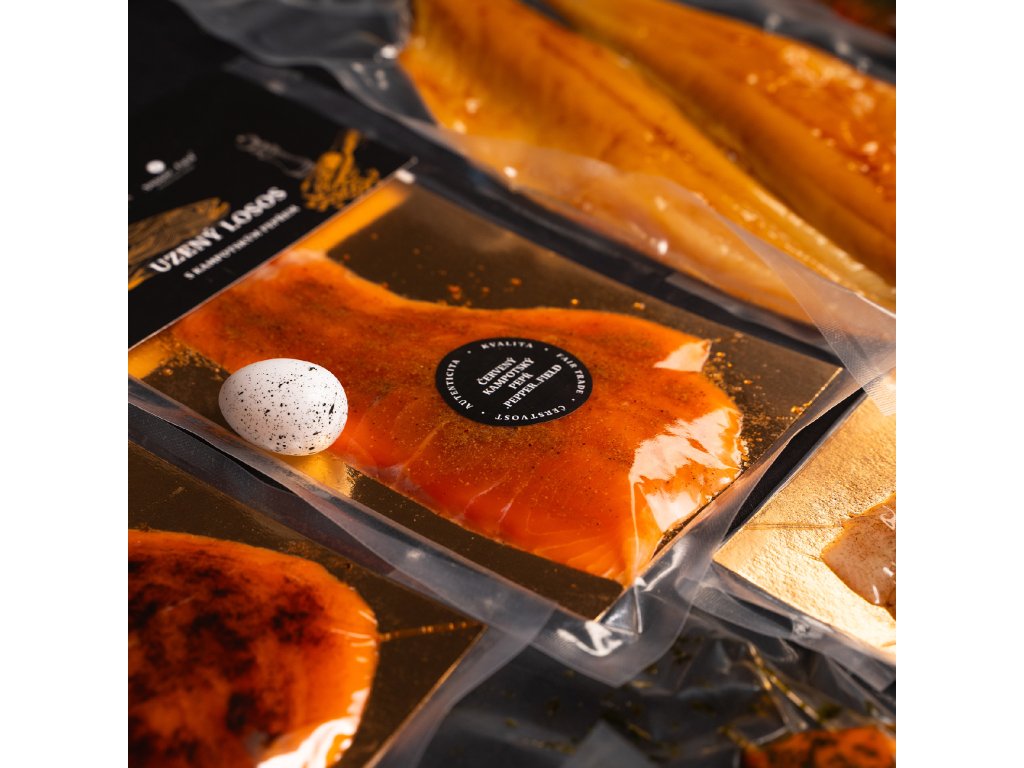 - Losos Atlantský uzený studeným kouřem min. 100g - Kampotský pepř .pepper..field